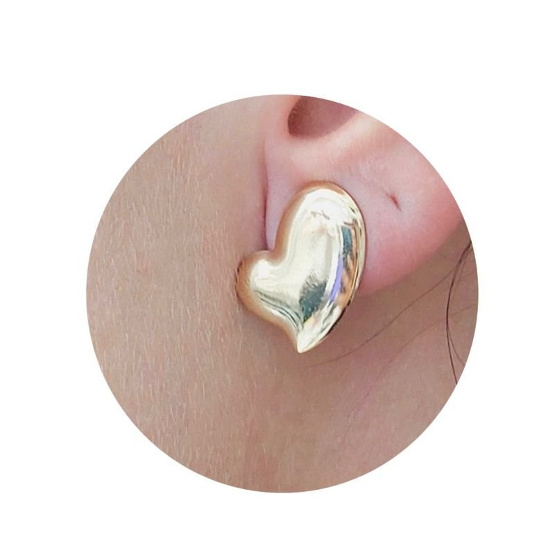 Brinco de pressão folheado a ouro. Coração. Para quem nao tem furo na orelha.Dicas de Cuidados de uso: