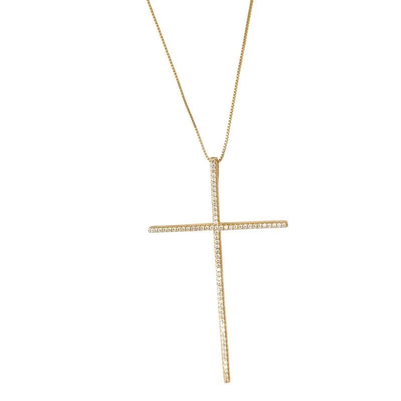 Colar com cruz palito folheado a ouro, com zirconias.Dicas de Cuidados com Suas Semijoias